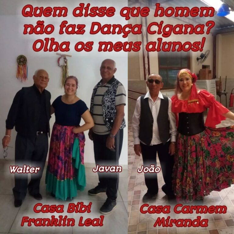 Através dos alunos, consigo também trabalhar a Dança Cigana Masculina, diferenciando os passos femininos dos passos masculinos em aula e provando para os homens que eles também podem dançar.
